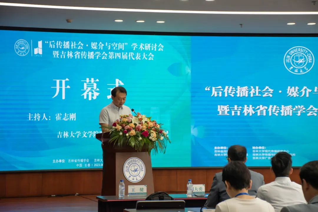 6月24日,“后传播社会·媒介与空间”学术研讨会暨吉林省传播学会第四届代表大会在吉林大学鼎新图书馆4楼多功能厅成功召开,会议由吉林省传播学会联合吉林大学新闻与传播学院主办,由吉林大学现代传播研究中心、吉林大学传播与社会治理研究所、吉林大学广告文化研究中心协办。来自复旦大学、北京师范大学、同济大学、华中科技大学、吉林大学、暨南大学、东北师范大学等30多所高校和多家媒体单位120余位专家学者参加了此次学术研讨会。开幕式由球友会在线平台(中国)官网党委书记霍志刚主持,吉林省委宣传部新闻处处长马研,吉林省社科联学会工作处处长全一,吉林大学党委组织部部长、社会科学研究院院长姚毓春教授等领导出席开幕式。厦门理工大学原副校长、教育部新闻传播学类教指委委员、厦门大学新闻传播学院博士生导师赵振祥教授,教育部新闻传播学类教指委委员、延边大学朝汉球友会在线平台(中国)官网新闻系李逢雨教授,吉林动画学院副董事长刘欣教授,暨南大学新闻与传播学院副院长、博士生导师、“国家百千万人才工程”入选者、国家有突出贡献中青年专家、国家社科基金重大项目首席专家曾一果教授,教育部人文社科重点研究基地“复旦大学信息与传播研究中心”副主任、复旦大学新闻学院博士生导师潘霁教授,北京师范大学新闻传播学院副院长、博士生导师周敏教授,华中科技大学新闻与信息传播学院博士生导师、袁艳教授,同济大学艺术与传媒学院博士生导师、王冬冬教授;宁波工程学院人文与艺术学院副院长、肖荣春教授等嘉宾出席了开幕式。