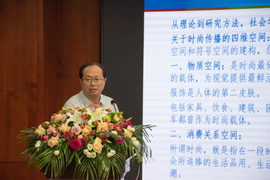 厦门理工学院时尚传播研究中心主任赵振祥教授以《时尚传播的四维空间建构:文化、物质、关系与符号》为题进行主旨发言,从六个部分对时尚传播进行具体的分析,阐述了时尚传播的特点之一就是与新闻传播关系密切,认为时尚传播倚重着大众传媒,无传媒、不时尚,“时尚即传播”。时尚为传播而生,在传播中获取能量,在传播中增值,兴于传播也死于传播。深厚的历史文化是创造时尚的土壤,贫瘠的文化土壤是难以生产出时尚的。建设中国时尚传播的知识体系,建构中国的时尚文化,讲述中国的时尚故事,让中国文化搭上时尚传播的快车是时尚传播的最终目的。
