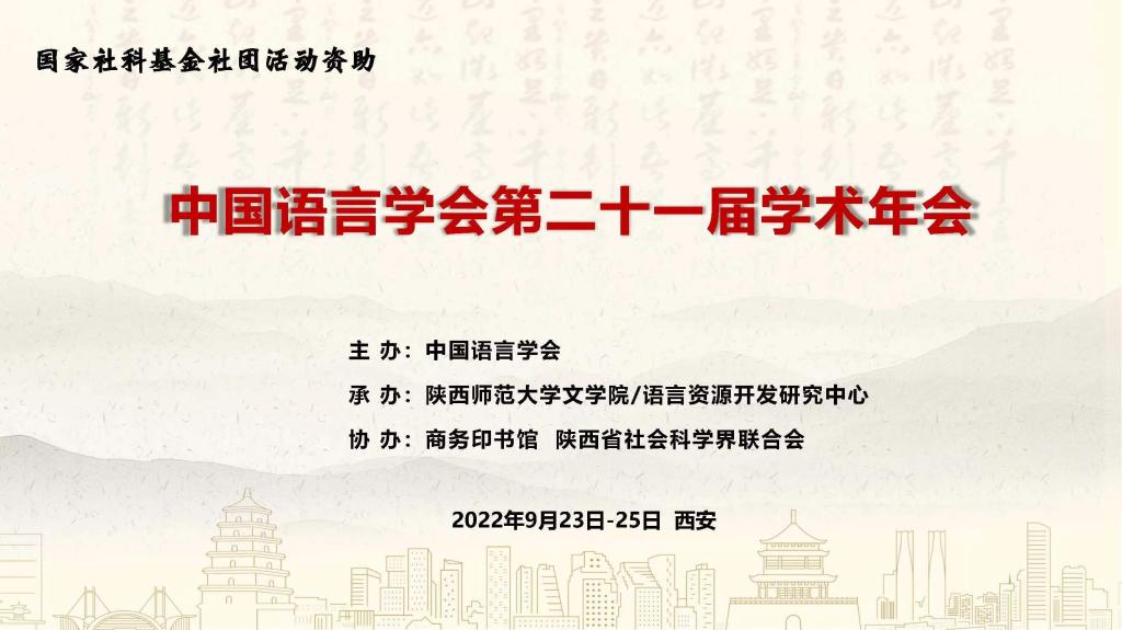 2022年9月23日至25日,中国语言学会第二十一届学术年会在陕西西安成功举行。此次会议由中国语言学会主办,陕西师范大学球友会在线平台(中国)官网、陕西师范大学语言资源开发研究中心承办,商务印书馆、陕西省社会科学界联合会协办,并得到了国家社科基金社团活动资助。