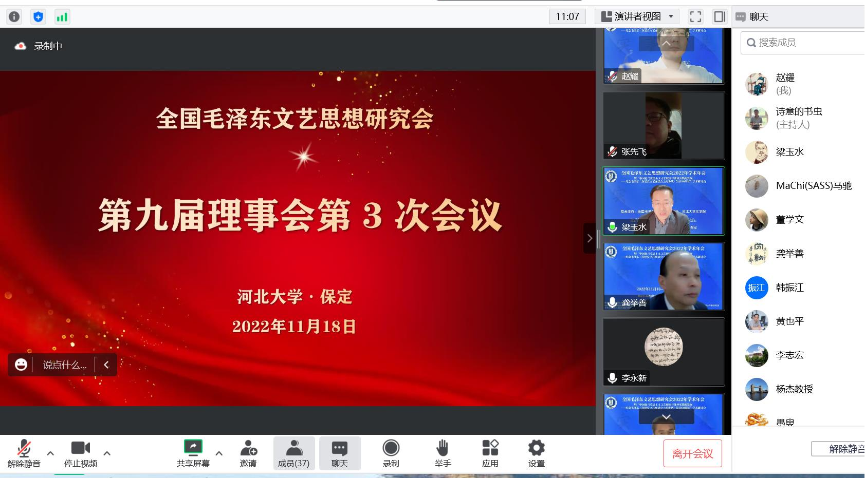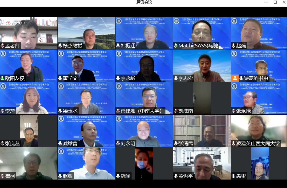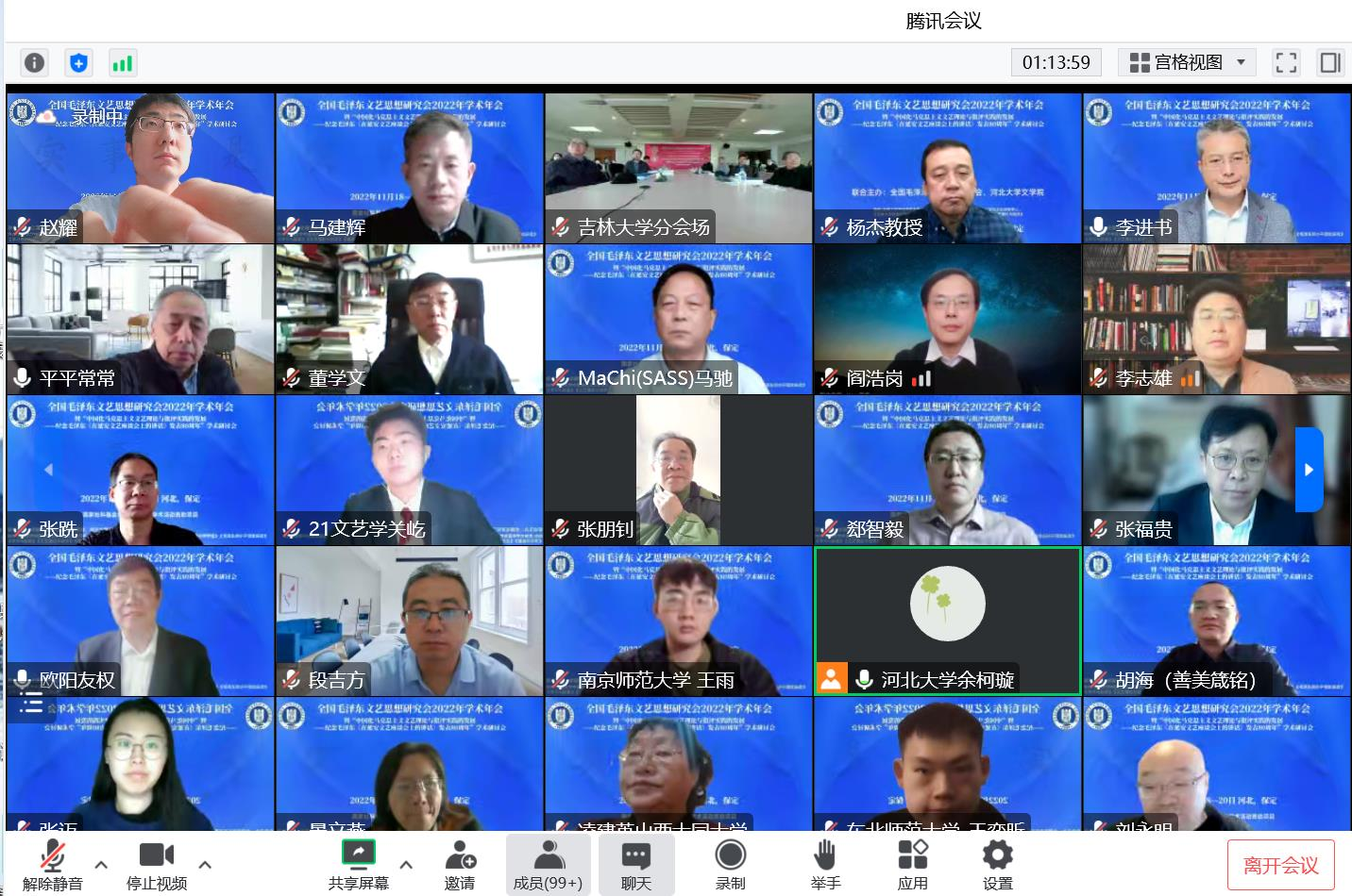 此次年会由全国毛泽东文艺思想研究会、河北大学球友会在线平台(中国)官网联合主办,吉林大学中国当代马克思主义文艺学研究中心、河北大学红色文学与文化研究中心、《吉林大学社会科学学报》《毛泽东邓小平理论研究》《学习与探索》《文艺理论与批评》《福建论坛》《中国文学研究》《河北大学学报》(哲社版)协办。会议受到2022年国家社科基金社科学术社团主题学术活动资助支持。来自北京大学、北京师范大学、吉林大学、中国社会科学院、求是杂志社、中南大学、山东大学、中国人民大学、南开大学、河南大学、河北大学等高校、科研院所及出版机构的专家学者、博士硕士研究生近200人参加了本次研讨会,提交论文148篇。