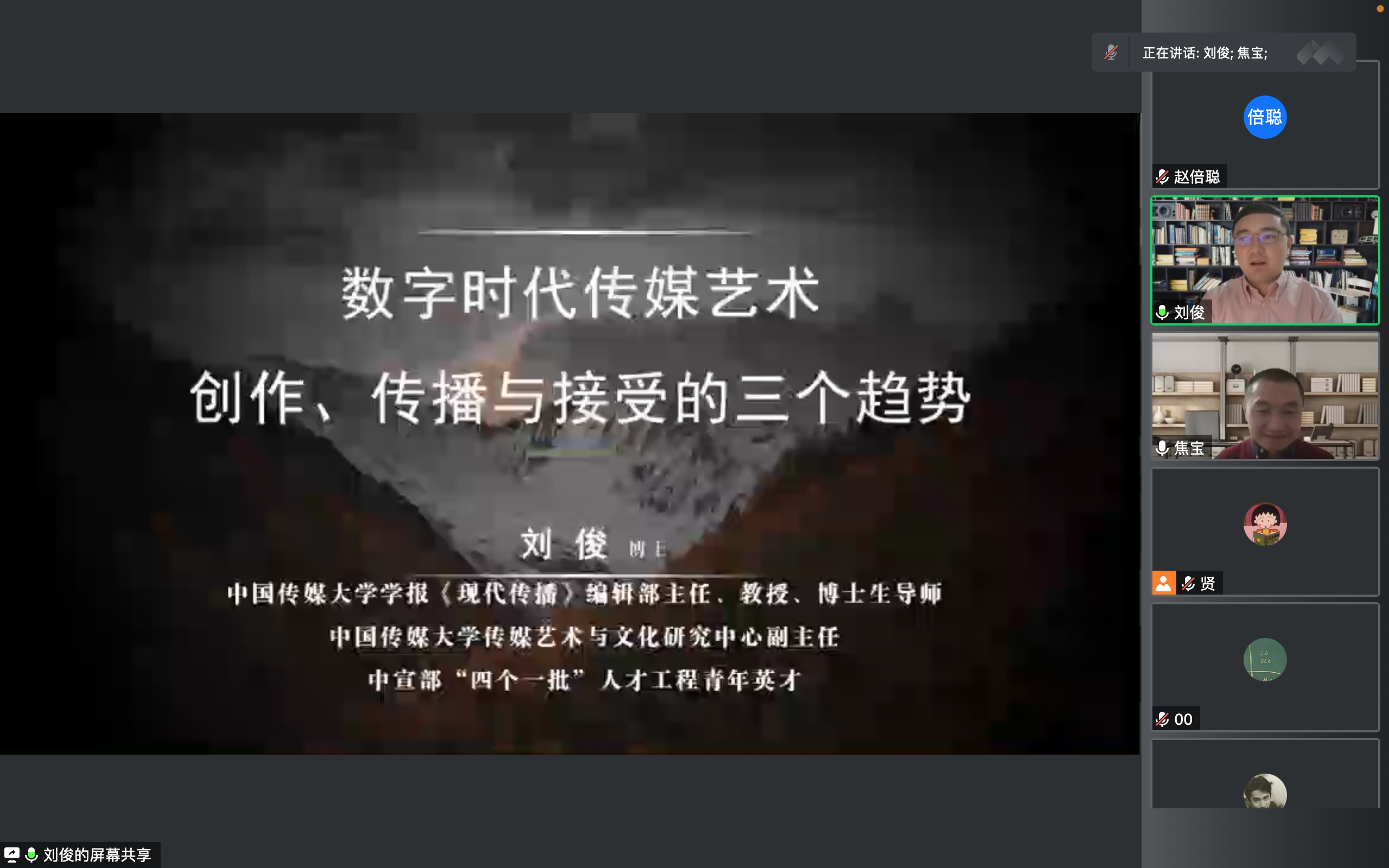 2022年12月1日,为深入学习数字媒体时代传媒艺术发展新趋势,促进各专业研究生学术交流与融合,提高学术创新能力。吉林大学党委研究生工作部、球友会在线平台(中国)官网暨新闻与传播学院、“新闻传播+”研究生学科交叉融合学术交流分中心以线上讲座的形式,特邀中国传媒大学教授、博士生导师刘俊。以“数字时代传媒艺术创作、传播与接受的三个趋势”为题,为各专业研究生进行了深入讲解,推动了各学科间的相互交流。新闻与传播学院焦宝老师、姜明老师参与本次讲座。新闻传播学、马克思主义理论、文学、史学、管理学、考古学等专业同学聆听本次讲座。