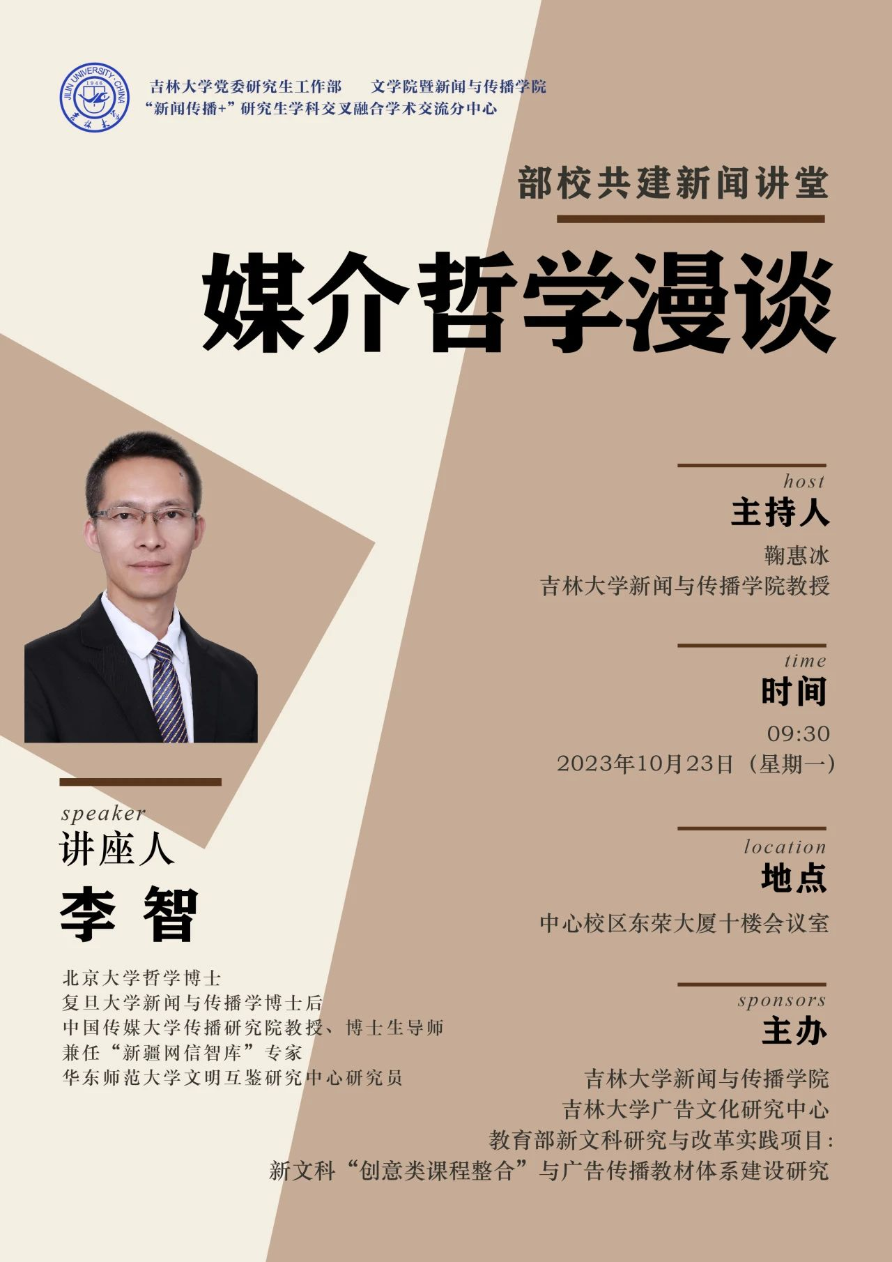 10月23日上午,吉林大学党委研究生工作部、球友会在线平台(中国)官网暨新闻与传播学院、“新闻传播+”研究生学科交叉融合学术交流分中心成功举办了以《媒介哲学漫谈》为题的学术讲座。