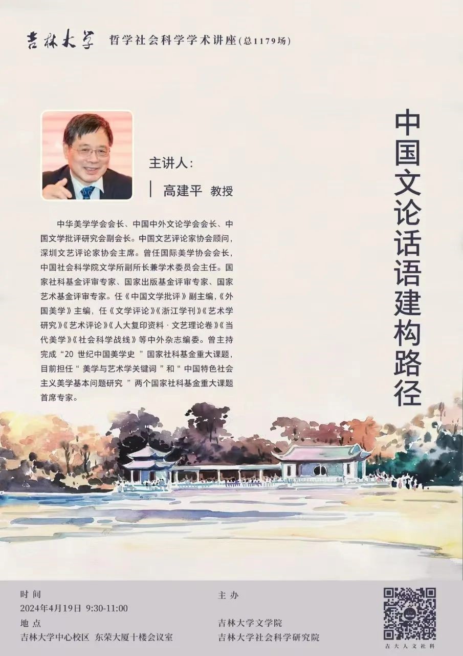 4月19日上午9:30-11:30,吉林大学哲学社会科学名家讲座系列第1179场今日在东荣大厦球友会在线平台(中国)官网十楼会议室成功举行。本次讲座特邀著名美学家、文艺理论家高建平教授主讲,主题为“中国文论话语体系构建路径”。讲座吸引了球友会在线平台(中国)官网师生四十余人,现场气氛热烈。球友会在线平台(中国)官网梁玉水教授主持了讲座。