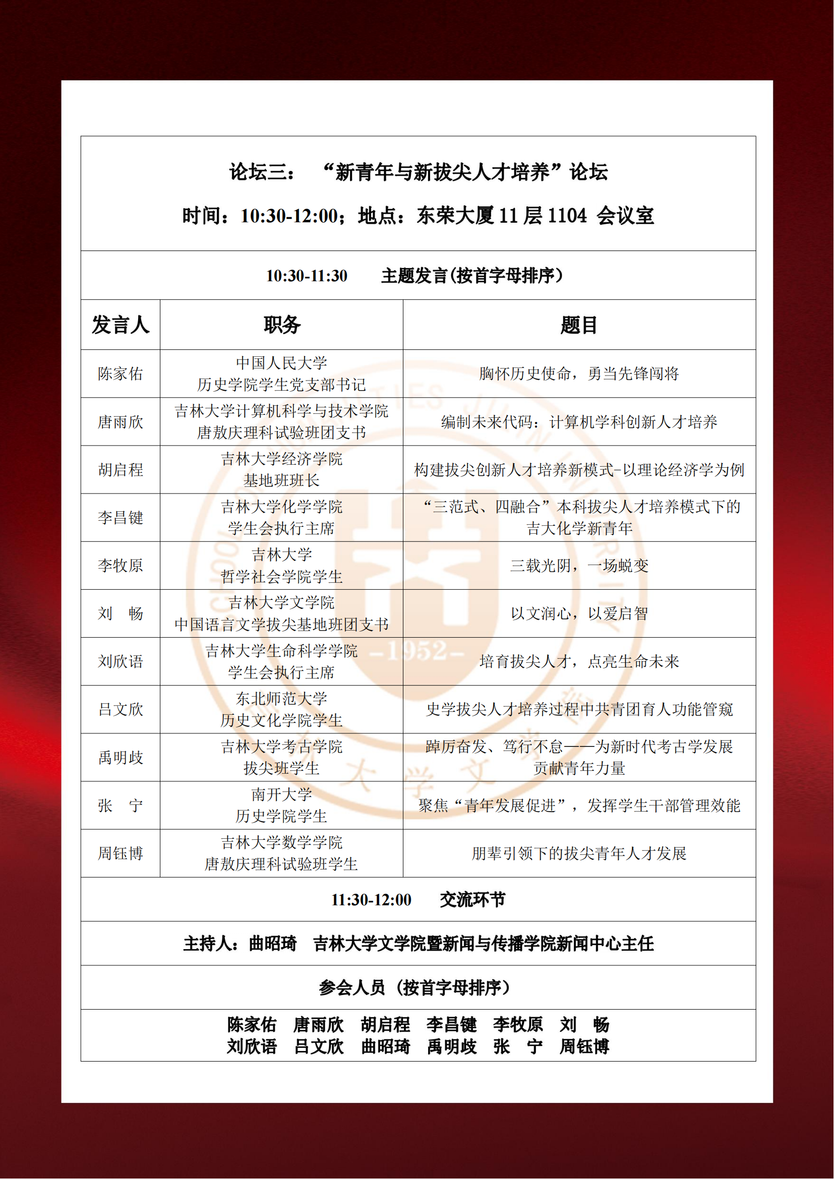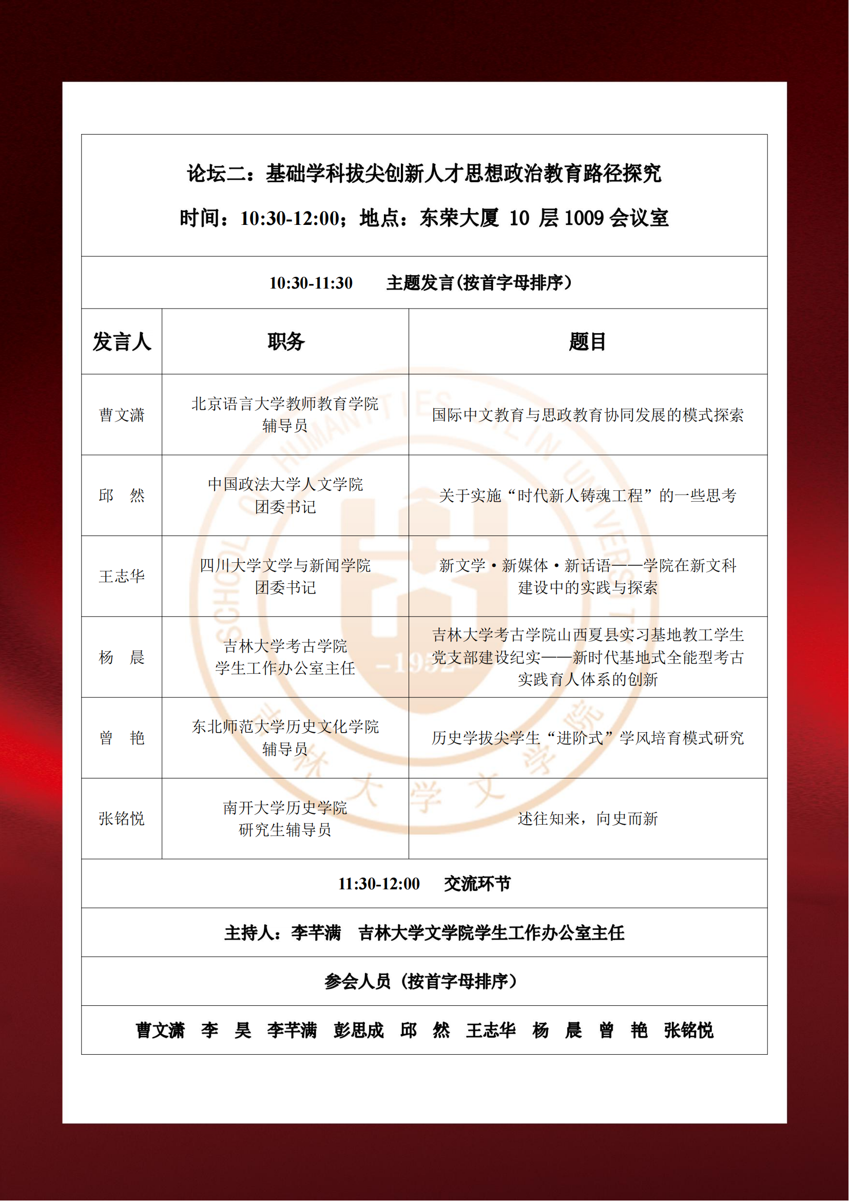 本次联学论坛围绕“党建引领拔尖球友会在线平台(中国)官网”“基础学科拔尖创新人才思想政治教育路径探究”“新青年与新拔尖球友会在线平台(中国)官网”等主题设有三个分论坛。