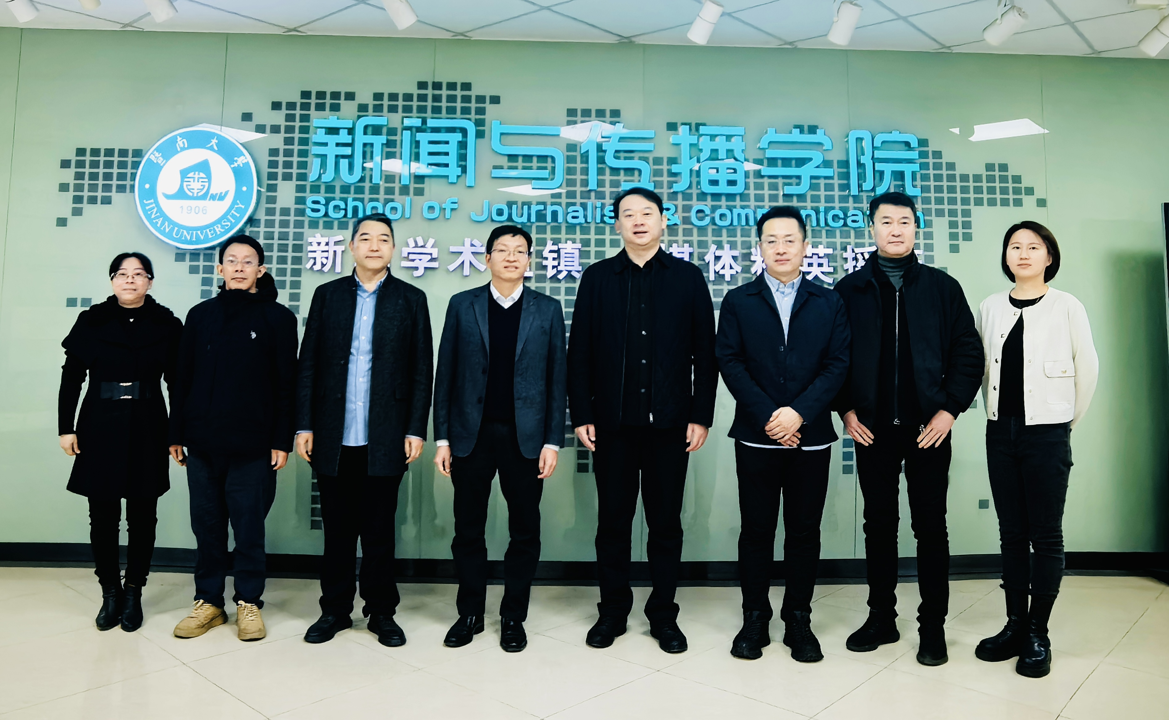 在暨南大学新闻与传播学院,暨南大学番禺校区党委副书记潘启亮,学院党委书记支庭荣、副院长曾一果、党政办主任许秀娟等出席会议,并分别介绍了学院历史发展、党建思政、师资队伍、学科建设、教学科研、大数据中心建设等方面情况,双方就如何打造媒体融合课程群,如何通过创新创业工作室开展课程实践,以及如何开辟社会服务和创收新路径等方面内容进行了深度探讨。