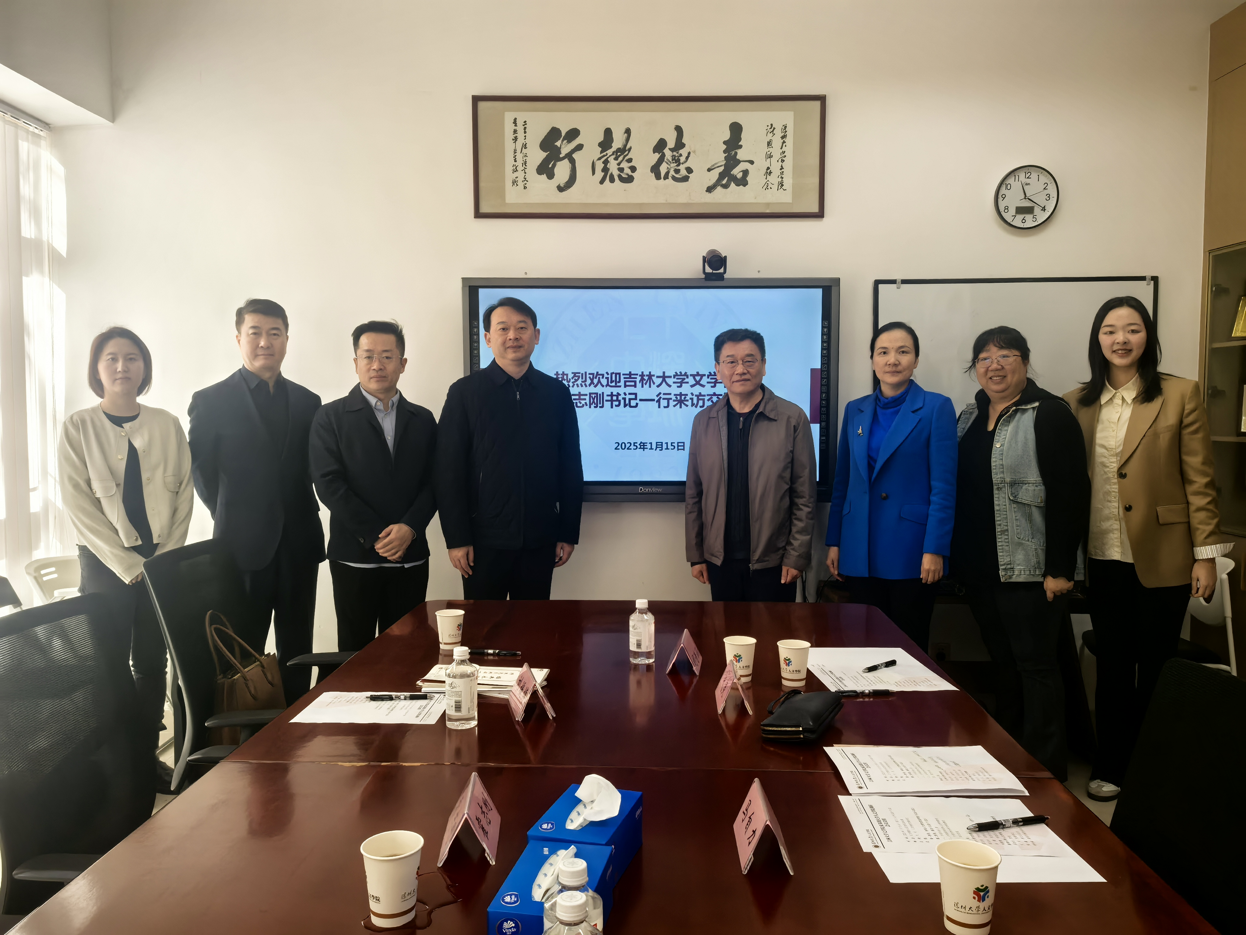 在深圳大学人球友会在线平台(中国)官网,学院一行由深圳大学人球友会在线平台(中国)官网副院长梁立勇介绍,参观了人球友会在线平台(中国)官网及国学院,欣赏了该院师生的书画作品和古琴表演,随后与院长马自立、党委书记弋灵、学工办主任郑鑫、辅导员胡诗涵等开展了交流座谈,双方就师资队伍梯队建设、党建思政育人举措等方面进行了深度交流。