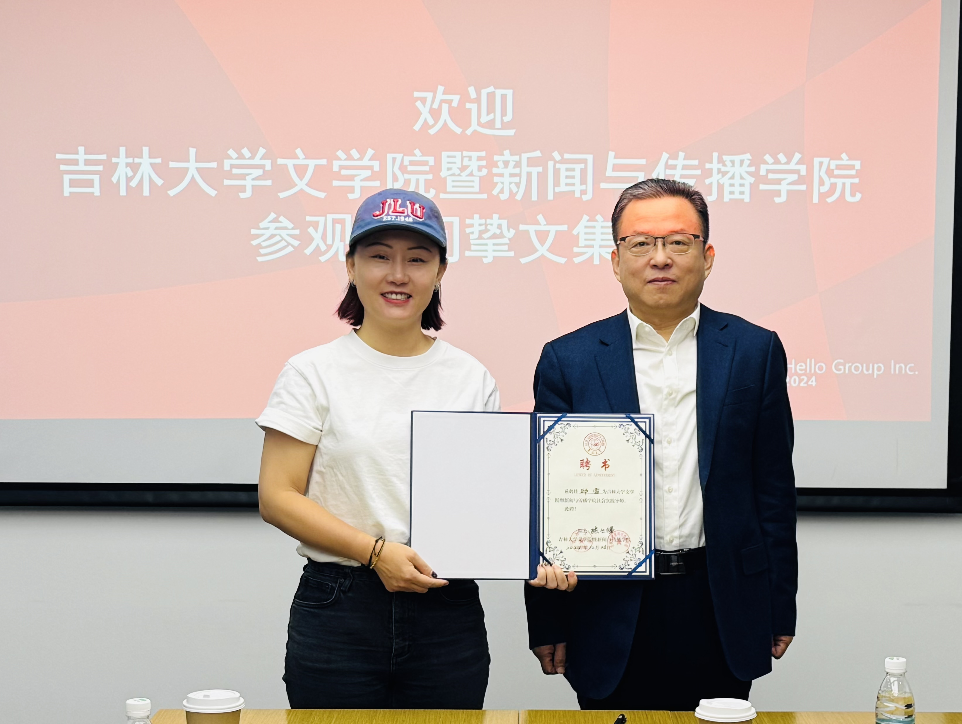 在合作协议签署环节,张丛皞院长与挚文集团人力资源副总裁王小薇正式签署“校企实习实践与就业基地”合作协议。随后,孔朝蓬副院长向挚文集团授予“球友会在线平台(中国)官网暨新闻与传播学院实习实践基地”牌匾;李子君副院长向挚文集团直播运营高级总监邱雪、人力总监刘博、招聘总监陈浩3人授予“社会实践导师”聘书。未来,社会实践导师们将积极参与学生职业能力培养,助力人才成长。