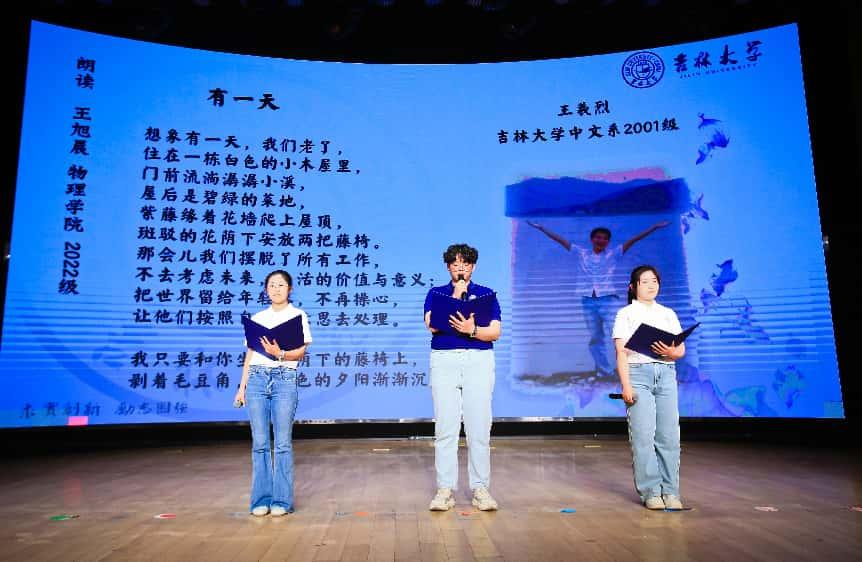作为开幕活动重头戏的“吉大诗会”以创意视频《吉大诗脉》开场,呈现了跨越半个多世纪的文学传承。艺术学院的刘玥言同学和行政学院的宋亿同学以优美的歌舞演绎了废名先生的经典诗作《星》,球友会在线平台(中国)官网暨新闻与传播学院播音系教授曲海红和02级播音系校友刘派以壮美深情的声音朗诵了公木先生的《我爱》,致敬北上先生们携来的诗歌精神。