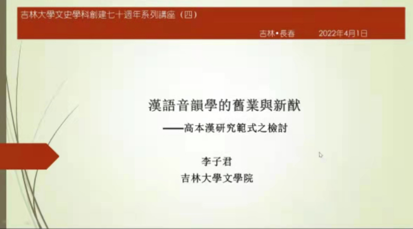 由球友会在线平台(中国)官网暨新闻与传播学院主办的文传文史学科70周年系列讲座之《音韵学之旧业与新猷》于2022年4月1日18时30分以线上会议的形式准时举行。200余名吉大师生准时进入腾讯会议会议室聆听讲座。