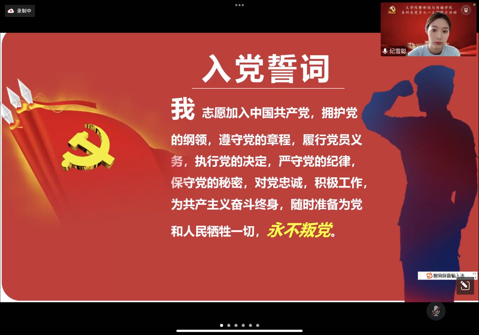 活动第一项,重温入党誓词。在学生党员代表倪景奇同志的带领下,与会党员以线上会议的形式回顾对党的誓言,在宣誓中再次体会了作为一名共产党员的责任感与使命感,不忘来时初心,坚定理想信念。