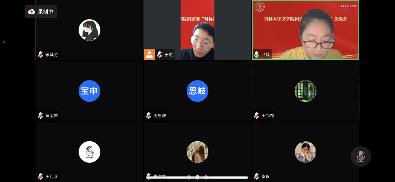 于航老师首先发言。他指出,遵照校团委的工作要求和统一部署,12月10日下午4点前,学院团委所属团支部完成了对标自评工作。12月10日-15日,学院团委结合日常工作考核情况,对照团支部自评结果,完成了复核认定,并随机抽查六个支部负责人进行线上交流。各支部负责人根据团支部对标定级考察的五个维度,即班子建设、团员管理、活动开展、制度落实、作用发挥等进行介绍、交流。
