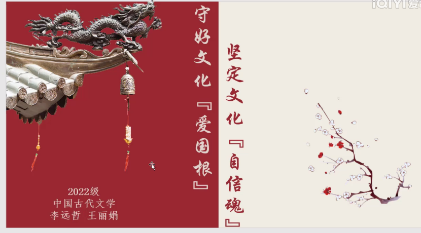 2022级中国古代文学研究生李远哲和王丽娟同学通过展示爱国士人事迹、爱国诗词和红色古迹等传统文化,来弘扬爱国主义精神;2021级人文科学试验班的陆骏驰同学以中国传统给织锦工艺——南京云锦为主体,讲述千年来云锦织造的传承发展、云锦匠人的初心与行动;2022级新闻传播学类的胡正宇同学以民间传统的游艺民俗为主要内容,从游艺民俗的概念种类、三个代表民族的典型游艺民俗和游艺民俗的现状与保护三个方面进行讲解;2022级播音主持与艺术的张智勤和熊璐带领同学们重读敦煌,穿越风沙感受独属于中国人的温情故事。