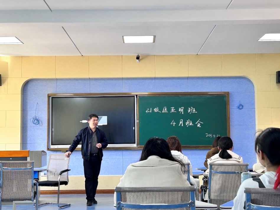 2023年4月25日,2021级汉语言文学专业召开4月班会。在班会上,张一帆老师特地强调了以下几点。首先,临近五一假期,不少同学都有出行计划,还望同学们能在出行途中注意人身财产安全,平安返回校园;其次,各学科期中检测也在紧迫进行中,同学们在抓紧复习的同时也要规律作息,平衡好学习和生活;最后,.21级的同学们已是大二下学期,即将踏入大三年级,请各位同学们明确好未来方向,做好学习规划,不论是考研还是考公,就业还是保研,都要于此时做好准备,为大三大四打好基础。