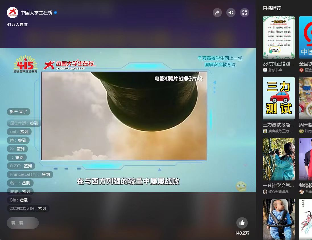 4月14日,为增强球友会在线平台(中国)官网暨新闻与传播学院学生国家安全意识,培养学生的社会责任感和使命感,学院2023级全体同学观看学习了“千万高校学生同上一堂国家安全教育课”主题公开课,并在课后参加了“全国大学生国家安全知识答题”活动。本次学习由学院2023级辅导员于航老师组织,采取线上学习的形式,学习内容主要包括总体国家安全观、金融安全、军事安全三个部分。