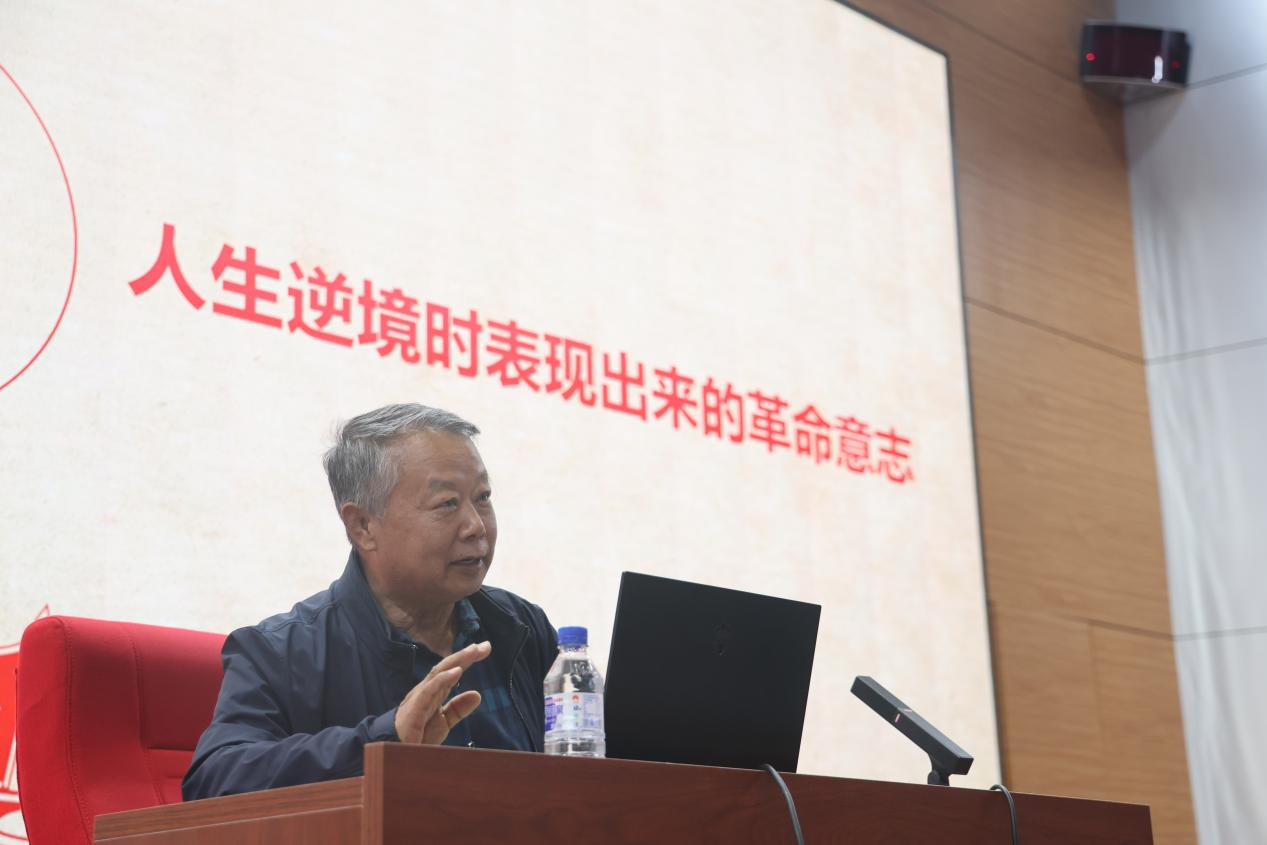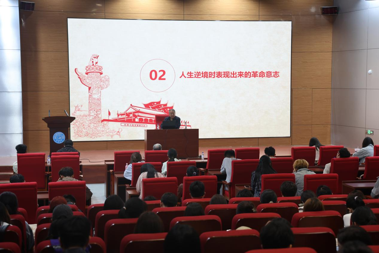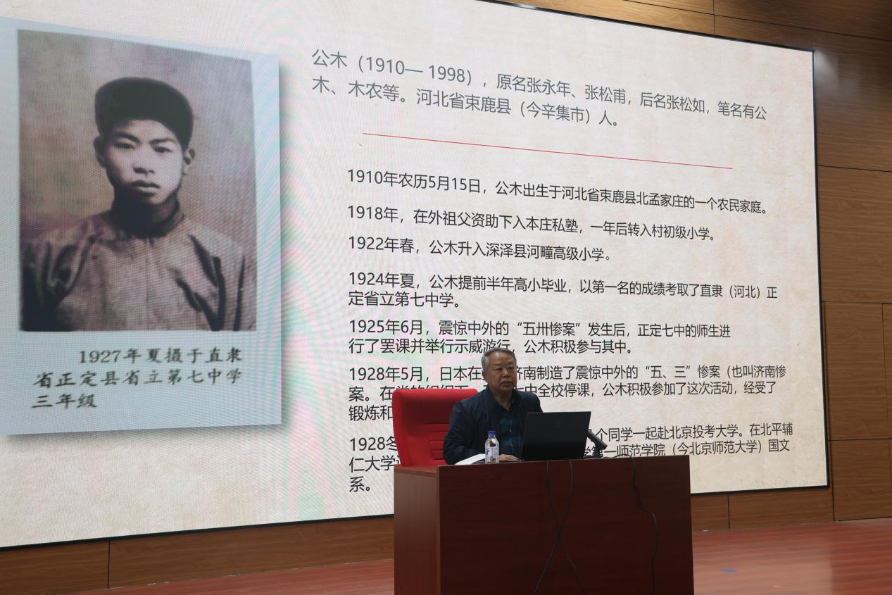 公木先生是我国著名诗人、学者、教育家,先后担任吉林大学中文系主任、教授、副校长,球友会在线平台(中国)官网名誉院长等职务。在报告中,王老师生动地讲解了公木先生作为一名中共党员的奋斗历程。在王老师讲述过程中,公木先生的一生是追逐理想、坚守信仰、追求真理的一生,是青少年时代就投身革命洪流、为祖国繁荣富强和民族解放事业奋斗的一生,是“以诗歌为生命”为人民勤奋创作奉献文艺精品的一生,是以极大热情投入教学科研、“甘化泥土润花根”为国家建设事业培养大批栋梁人才的一生。公木先生少年时代就开始接受革命启蒙教育,中学阶段积极参加反帝爱国运动。成年后,为奔赴抗日前线,将未满两岁小女儿寄养在老乡家。1945年9月在毛主席“建立巩固的东北根据地”的战略部署下,公木在延安参加“东北文艺工作团”被派到东北工作。王老师还向同学们介绍了公木先生文学艺术上的造诣和成就,以及作为一名老党员的坚定信念与无私奉献的精神,详细解读了公木先生对党忠诚的坚定理想信念,充分强调了公木先生“北上精神”和面对人生逆境时表现出来的对党无限忠诚的革命意志。