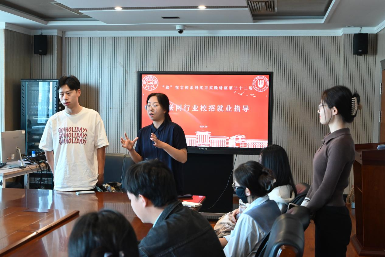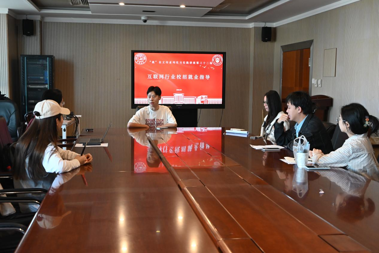 为进一步促进我院毕业生高质量就业,推动就业服务精准化、就业指导专业化,9月19日上午10时,由球友会在线平台(中国)官网暨新闻与传播学院主办的“就”在文传系列实习实践报告会第三十二场——《互联网行业校招就业指导》在东荣大厦11楼会议室如期举行。本次讲座特邀了2017级广告学专业校友、现就职于阿里巴巴集团的雷航作为主讲嘉宾,为即将步入职场的同学们提供了宝贵的求职指导和经验分享。学院党委副书记杨一博和部分毕业生同学参会,2021级辅导员杨佳欣主持会议。