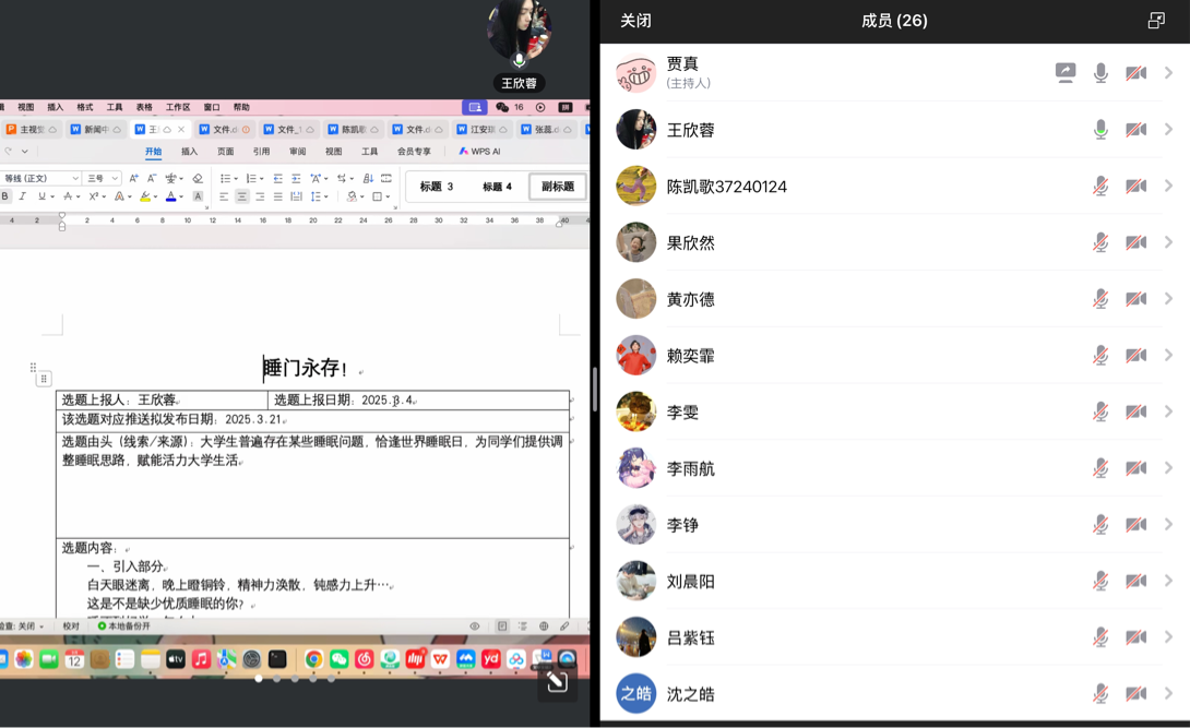 3月12日,按照新闻中心章程及学生记者培养方案,依托学院“青年团味+”文传新媒体平台“青团”育人计划,球友会在线平台(中国)官网暨新闻与传播学院团学组织新闻中心通过线上会议召开3月选题会,新闻中心副主任贾真主持本次会议,新闻中心指导老师、兼职辅导员曲昭琦和新闻中心全体学生记者参会。
