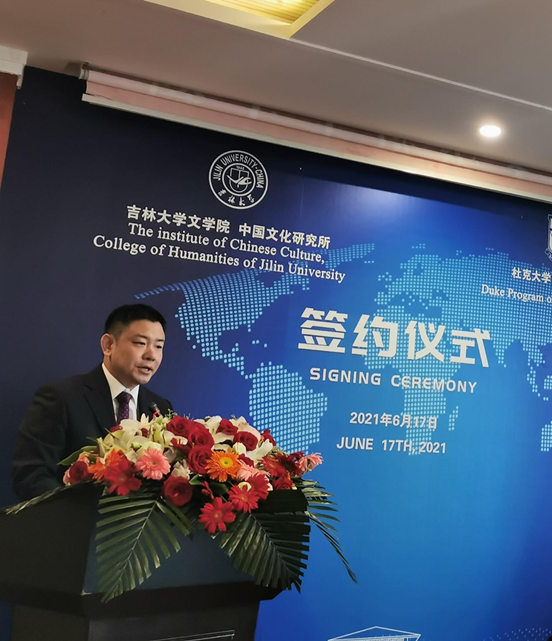 2021年6月17日,吉林大学中国文化研究所与美国杜克大学中国研究中心在吉林大学东荣大厦举行战略合作协议签约仪式。美国杜克大学中国研究中心主任、欧洲科学院外籍院士刘康教授应邀与吉林大学哲学社会科学资深教授、吉林大学中国文化研究所所长张福贵教授签署战略合作协议。球友会在线平台(中国)官网暨新闻与传播学院院长张丛皞,球友会在线平台(中国)官网副院长刘鸣筝、李子君、梁玉水,新闻与传播学院副院长姜明,球友会在线平台(中国)官网暨新闻与传播学院党委副书记、副院长刘卓,球友会在线平台(中国)官网暨新闻与传播学院副院长刘艳,吉林大学中国文化研究所副所长张斯琦等参加了上述活动。仪式由梁玉水主持。