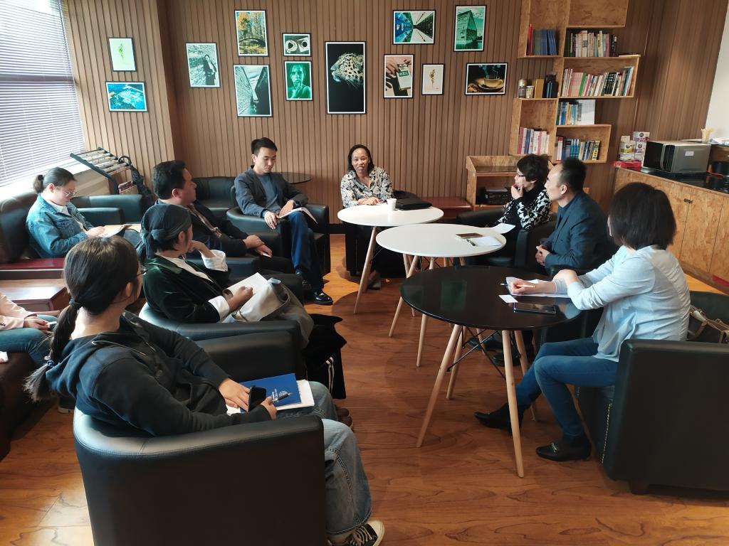 我院教师与Nancy就双方关注的问题进行了交流,就师资互访、教学合作等方面的内容畅谈了想法。会上,孔院长与Nancy相约于明年邀请堪萨斯州立大学的师生来访我院并在我院举办summer school,由两院教师合作为中外两院学生开设创意产业、数字媒体方向的课程。在座的同学们还与Nancy教授就该校硕士生项目、交换生项目的相关内容进行了问答