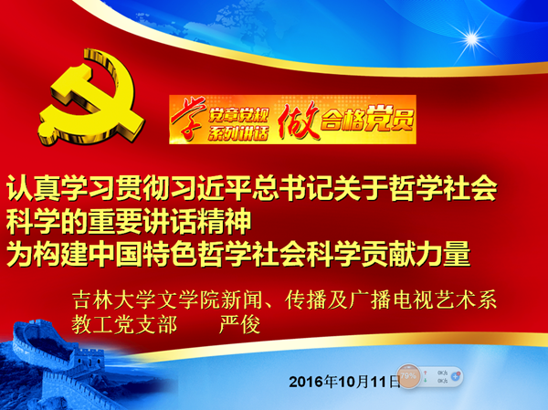 支部书记严俊在上党课时,全面讲解了《习近平总书记在哲学社会科学工作座谈会上的讲话》的主要内容,并且谈了自己的学习体会。他认为,习近平总书记在哲学社会科学工作座谈会上的重要讲话,是新形势下繁荣发展我国哲学社会科学事业的纲领性文献,为新时期高校哲学社会科学工作指明了方向。严俊就学习、贯彻习近平讲话精神提出了具体要求:一、将深入学习、贯彻习近平总书记关于哲学社会科学的重要讲话作为“两学一做”学习教育的重要内容和今后长期的政治任务,深入学习,认真领会,学深学透,真学真做。二、要自觉把马克思主义的立场、观点、方法贯彻到科研和教学工作当中,大力推进新闻传播学和广播电视艺术学学科体系与教材体系的创新,树立为人民做学问的理想,深化教育教学改革,全面落实立德树人的根本任务。三、以服务党和政府的决策为宗旨,以人民为中心,坚持问题导向,以改革创新为动力,述学立论,建言献策,发挥好哲学社会科学服务社会实践、球友会在线平台(中国)官网、舆论引导等方面的重要功能。