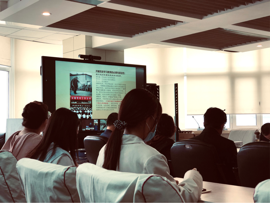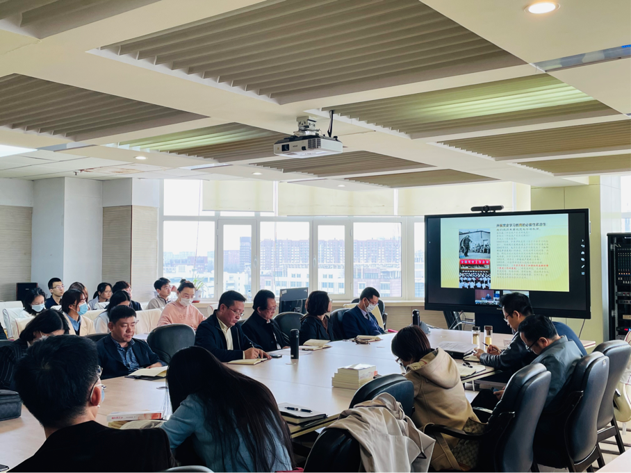 按照学校疫情防控要求,球友会在线平台(中国)官网党委组织学院全体处级领导干部、党委委员、纪委委员、各系教工党员、学生党支部书记和支部委员于东荣十楼会议室在线观看视频直播,进行学习。