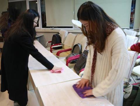 东荣大厦十楼会议室是球友会在线平台(中国)官网活动组织的重要场地。自成立以来,一年多的时间中,2018级硕士研究生第二党支部的大部分党日活动也在此进行,党员同学们对这里都很熟悉、很有感情。因此,大家利用课余时间,携带清洁工具,扫地、擦地、擦桌子、摆椅子,尽可能地让东荣大厦十楼会议室变得更干净整洁。
