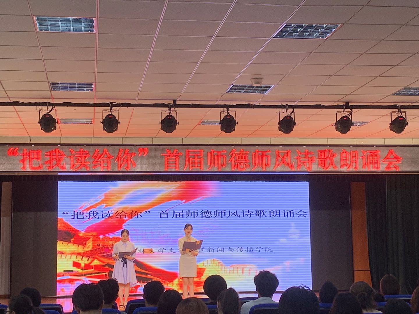 为进一步巩固立德树人文化成果,传播高尚师德师风,浓厚文化育人氛围,球友会在线平台(中国)官网暨新闻与传播学院于2019年9月5日下午5点30分在田家炳礼堂举办了“把我读给你”首届师德师风诗歌朗诵会。新闻与传播学院广播电视艺术系副主任张芳馨老师作为点评嘉宾出席了本次活动。