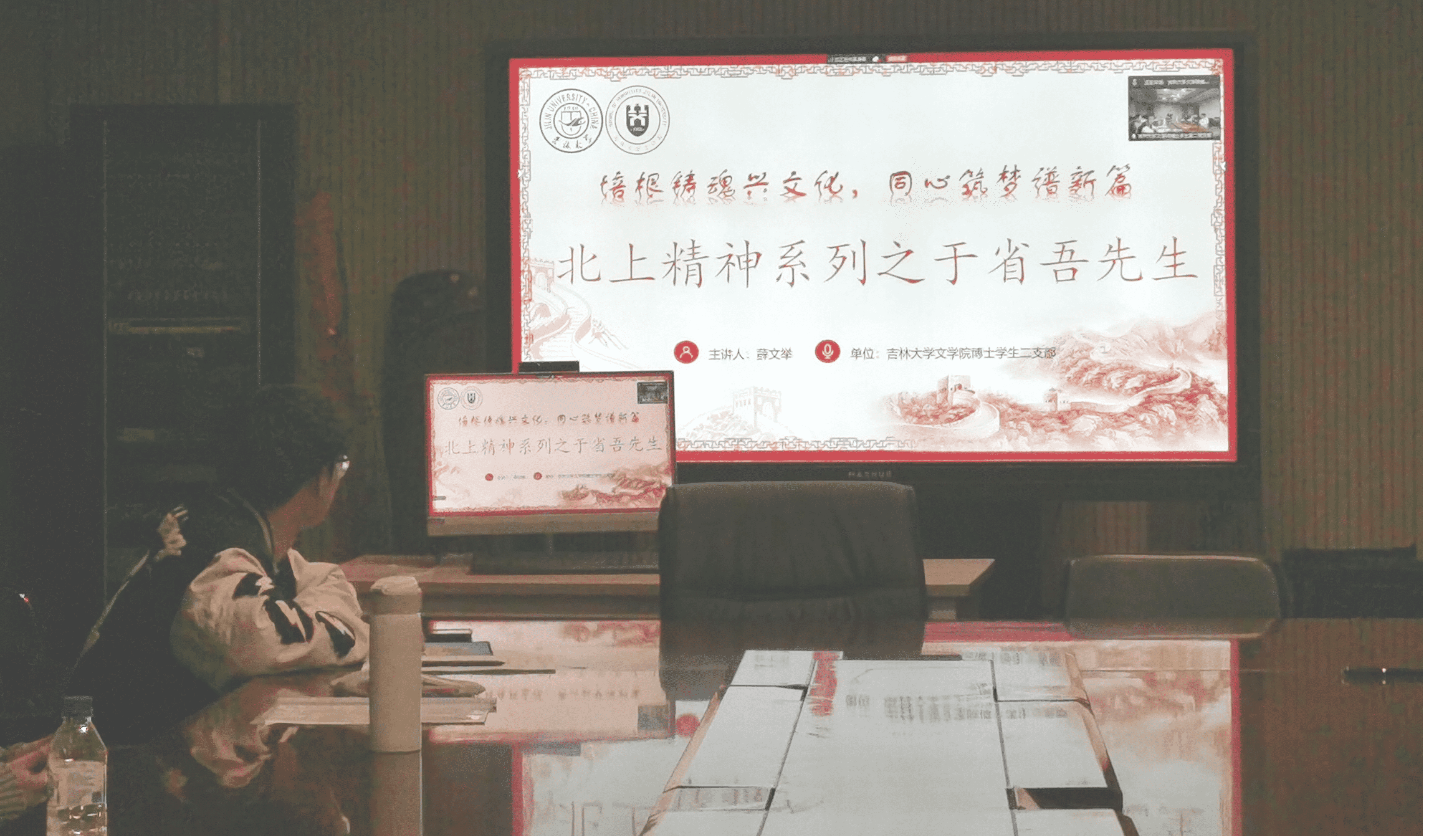 “国之所需,先生所赴;高山仰止,闻雁声声”。我院博士学生第二支部,结合本校特色,以“北上精神”为核心,讲述了于省吾先生变卖家产搜集文物,和匡亚明先生三顾茅庐请于先生的故事。借助榜样的力量,带动党员同志们增强思想自觉,敢于担当,奋发有为,繁荣中国学术,发展中国理论,为实现第二个百年奋斗目标,实现中华民族伟大复兴的中国梦作出贡献。