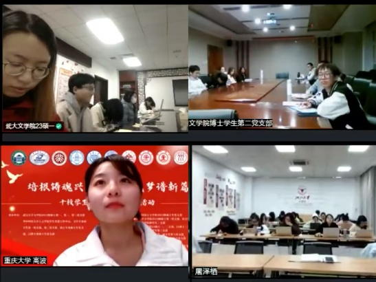 为激发党建活力,提升支部成员的凝聚力。2025年3月28日晚,我院博士学生第二支部参加了以“精神谱系传承”为主题的联合党日活动。该活动由武汉大学球友会在线平台(中国)官网支部和华中科技大学人球友会在线平台(中国)官网支部联合举办,并且以线上线下相结合的形式顺利开展。参加本次活动宣讲的还有重庆大学博雅学院研究生二支部、武汉大学博士生宣讲团和浙江大学球友会在线平台(中国)官网本科生第二党支部。参与旁听的支部分别是武汉大学球友会在线平台(中国)官网2023级硕士第一、第二、第三党支部和华中科技大学人球友会在线平台(中国)官网文学专业硕士生第一党支部。